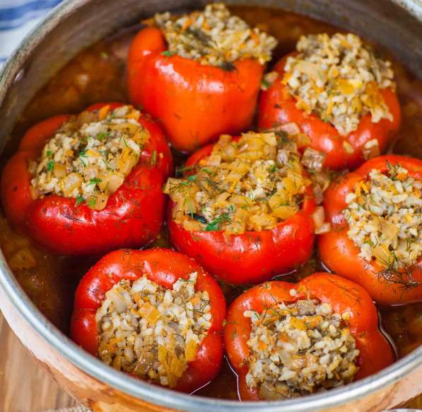 Інгредієнти: Перець солодкий – 10–12 шт. Гречка – 200 г Свинячий фарш – 400 г Сіль, спеції – за смаком…