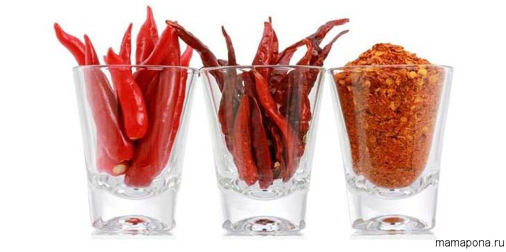 Перець чилі (червоний гострий перець) – прянощі, що мають пекучий смак. Свіжі чи висушені плоди певних сортів тропічного напівчагарника. Рослина висотою до 60 см з гіллястими стеблами, еліптичним листям, великими білими або сіруватими з фіолетовими плямами квітками. Плоди є ягодами з малосоковим оплоднем від кулястої до хоботовидної форми, від жовтого і червоного до чорно-оливкового кольору.