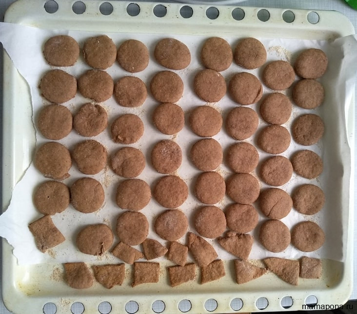 На лист застелити пергаментний папір. Присипати трохи борошном. Викласти печиво. Випікати в заздалегідь розігрітій духовці за 180 градусів 20-30 хвилин.
