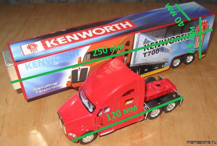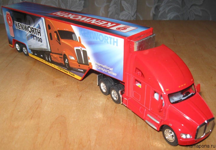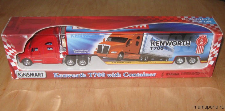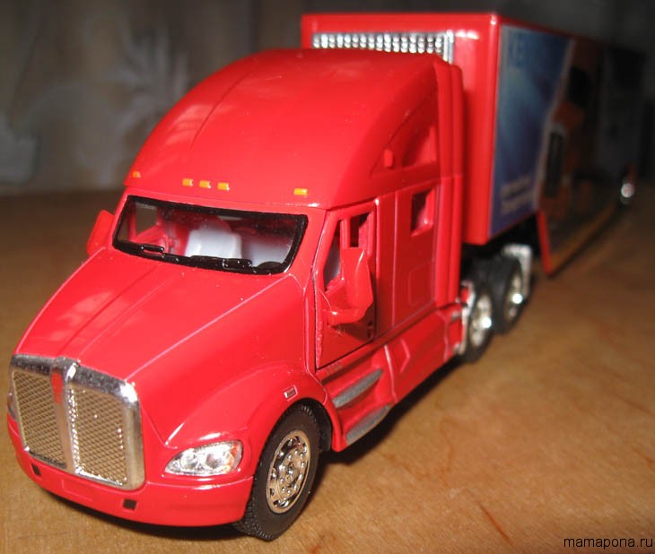 Фура-модель KINSMART з повністю поворотним причепом. Дуже опрацьована детально модель. Причіп можна завантажувати. Сподобається дітям та дорослим). Нашому синові 2 роки, він у захваті від іграшки.
