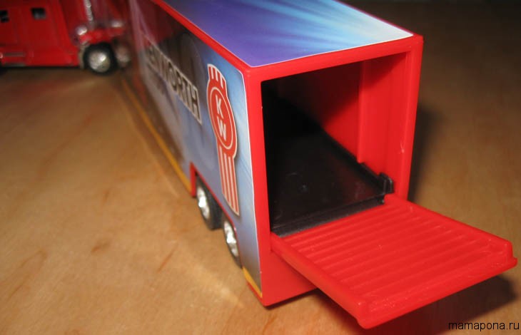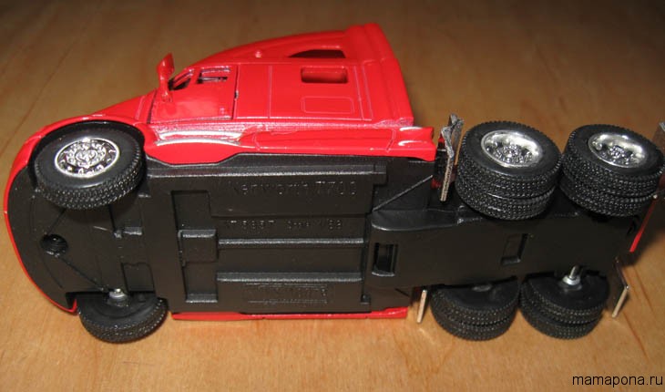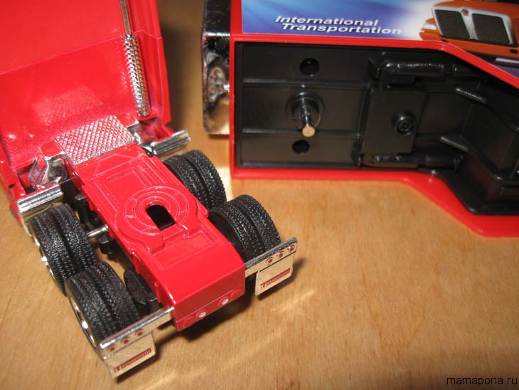Кабіна та нижня деталь рами – пластмас, верхня частина рами – метал. Причіп повністю пластмасовий. Пластмас досить якісний і міцний, Китаєм не пахне))).