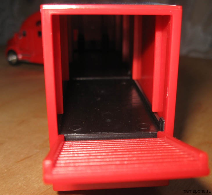 Причіп відкривається ззаду. Причому двері фіксуються у двох положеннях: біля землі та до підвищеної платформи: