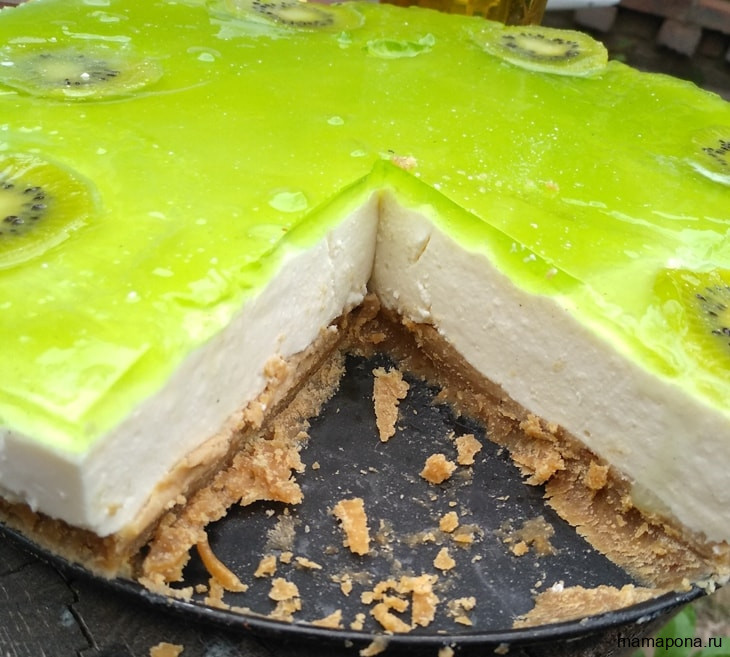 Верхній шар: на застиглий сирний крем викласти фрукти, залити остиглим желе й залишити до повного застигання (краще на ніч).