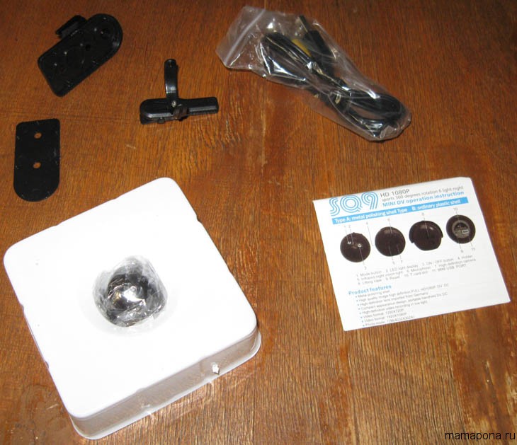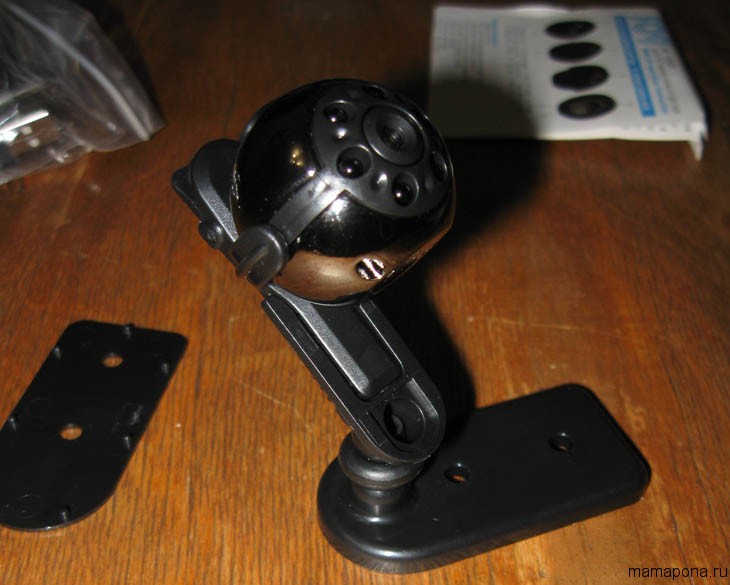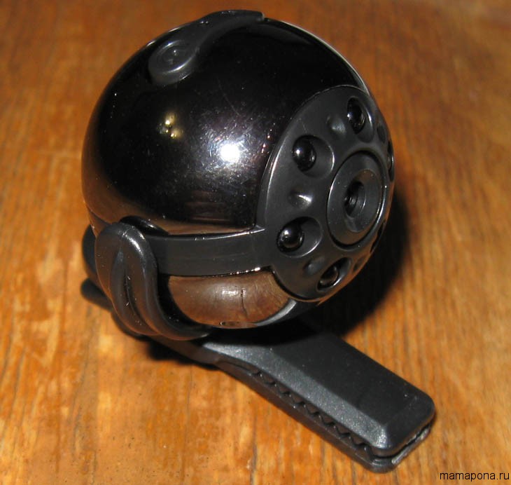 Сферична відеокамера з датчиком руху та нічним баченням. Поставляється у коробці з наступною комплектацією: кліпса, кронштейн, USB/TV кабель, інструкція. Ця міні-камера має вбудовану літій-іонну батарею.